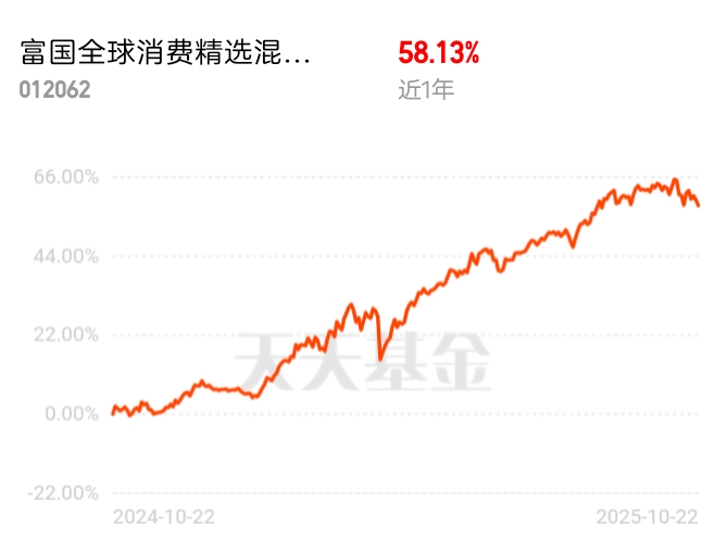 悦己消费彻底火了! 2025年不仅年轻人为香薰、潮玩买单,银发族兴趣消费订单暴涨60%,三四线城市也掀起体验式消费热潮。想布局泡泡玛特、老铺黄金这些热门标的,又愁港股门槛高?富国全球消费精选混合(QDII)C(012062)就是破局钥匙! $富国全球消费精选混合(QDII)人民币C$ 它打通A股、港股、美股等全球市场,精准捕捉从物质到体验的消费升级红利。近一年收益率飙至58.13%,同期最大回撤仅...
