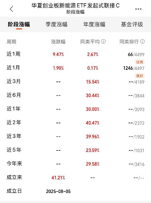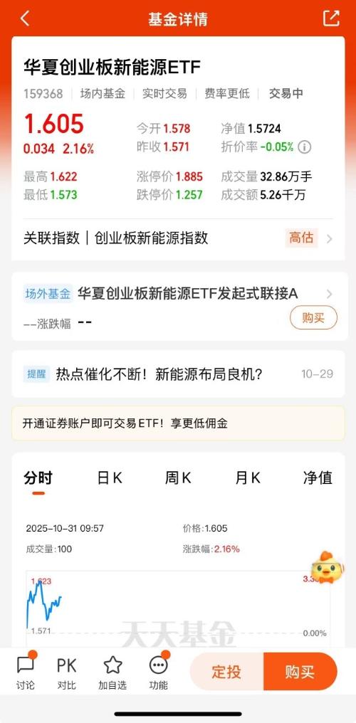 玄翼概率思维者 更新于 今天 14:15 20次浏览 今天逆市反弹,场内冲2%+,相信$华夏创业板新能源ETF发起式联接C$能够继续冲,新基金刚成立没多久,近一周就有收益9.47%,加油冲 1赞