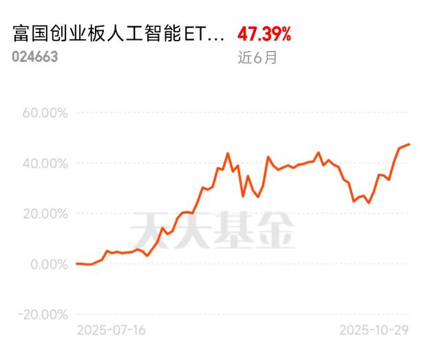 刚加仓富国创业板人工智能ETF联接C,近6个月涨了47%,跑赢大多数同类!持仓集中在芯片、软件、新能源车这些高成长赛道,研发投得猛,营收也跟上,拿得住就别轻易下车~