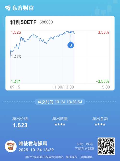 $科创50ETF(SH588000)$1.31成本,拿了几个月,第一次感受到股市赚钱的魅力,个股把握不好,etf是我的救命稻草,让我回本让我赚钱,最主要的是真能踏实睡觉