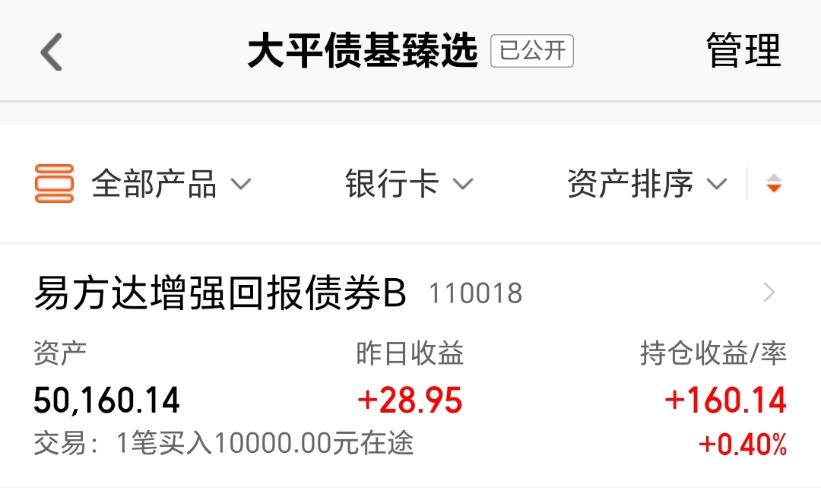 我的基金投资心得和加仓逻辑如下:今天我买入$易方达增强回报债券B(OTCFUND|110018)$1万块钱。今天A股市场有些回暖,经过短期调整后,抄底性价比逐渐提升了,目前比较关键的是量能能否持续支撑结构性行情,衡量下来,我选择继续布局固收+,这样子进可攻,退可守。昨日行情一般,不过这个基金还是逆势收蛋7个。它近6个月涨3.58%,近1年涨4.82%,近2年涨15.67%,近5年涨25.88%,...