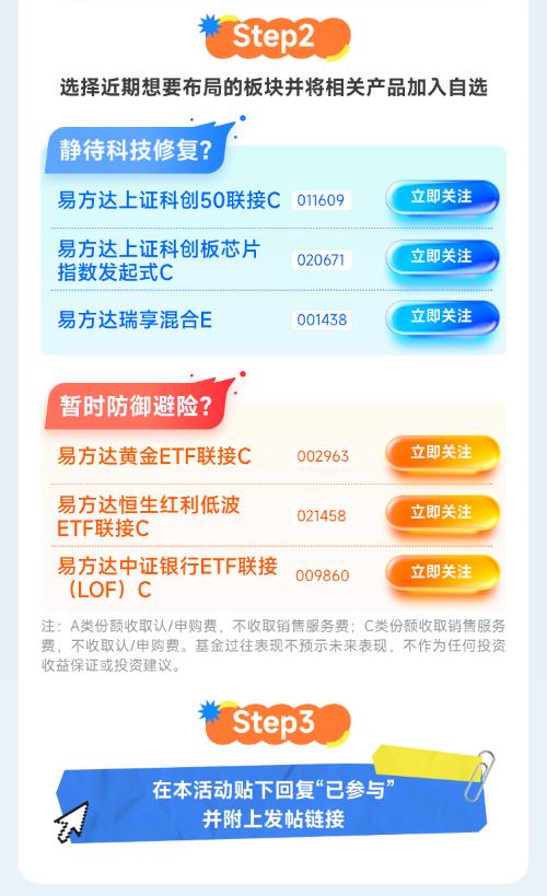 立即参与→#热点快闪:成长板块何时修复?#产品直通车→$易方达上证科创50联接C(OTCFUND|011609)$$易方达上证科创板芯片指数发起式C(OTCFUND|020671)$$易方达瑞享混合E(OTCFUND|001438)$$易方达黄金ETF联接C(OTCFUND|002963)$$易方达恒生红利低波ETF联接C(OTCFUND|021458)$$易方达中证银行ETF联接(LOF)C(OTCFUND|009860)$...