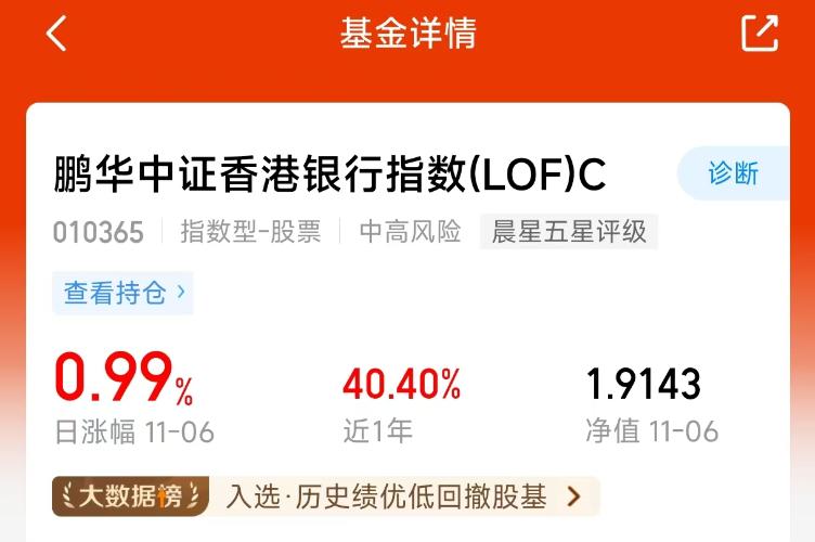 如果把投资比作航行,那么组合中既需要有乘风破浪的成长型资产,也需要有能抵御风浪的稳定型资产。$鹏华香港银行指数(LOF)C$(010365)更像后者,它投资的是经过时间考验的大型金融机构,这些公司波动相对较小,并且能提供持续的股息流入,这有助于在市场下跌时提供一定的缓冲。考虑为你的投资之舟加装一个“压舱石”,或许能让旅程更平稳。#4000点到底要不要止盈?#