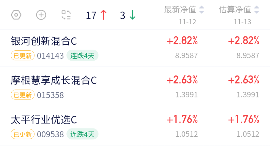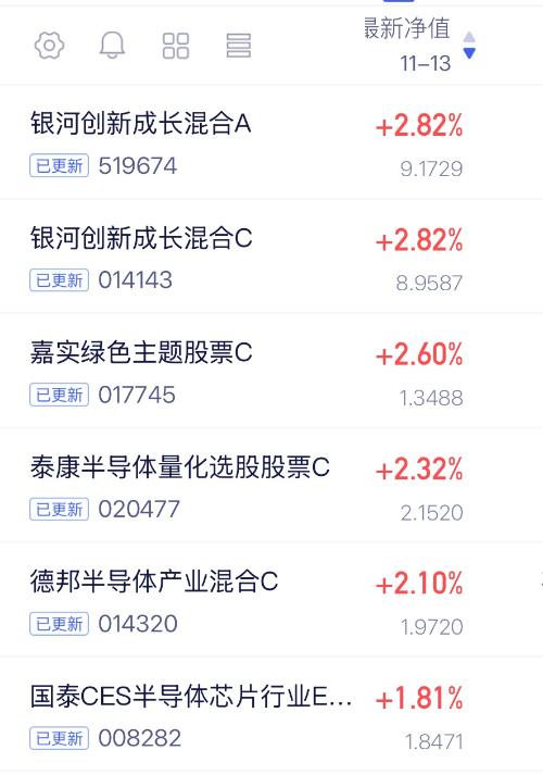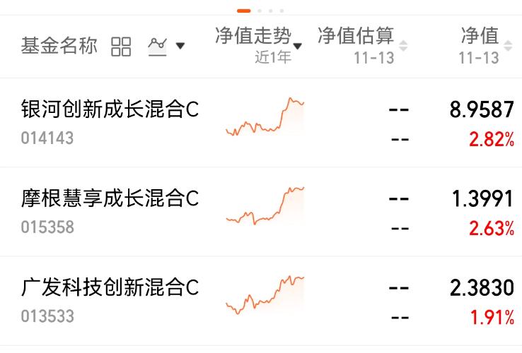 友友们,沪指又创新高了,牛市行情反弹比较快。科技板块也反弹上涨了。$银河创新成长混合C(OTCFUND|014143)$上涨2.82%$摩根慧享成长混合C(OTCFUND|015358)$上涨2.63%$太平行业优选股票C(OTCFUND|009538)$上涨1.76%
