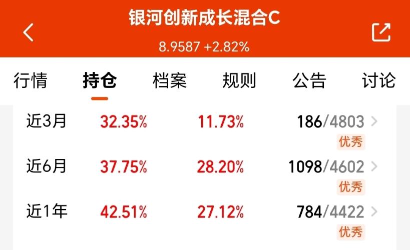 银河创新混合A近1年同类排名前7%(130/1873)银河中债0-3年政金债指数A近1年同类排名第1(1/156)银河季季盈90天滚动持有短债C近1年同类排名第7(7/132)#沪指刷新10年新高!4100点指日可待?##黄金又牛起来了!这次你上车了吗?##多重利好催化!新能源走强#$银河创新成长混合A(OTCFUND|519674)$$银河季季盈90天滚动持有短债C(OTCFUND|015351)$...