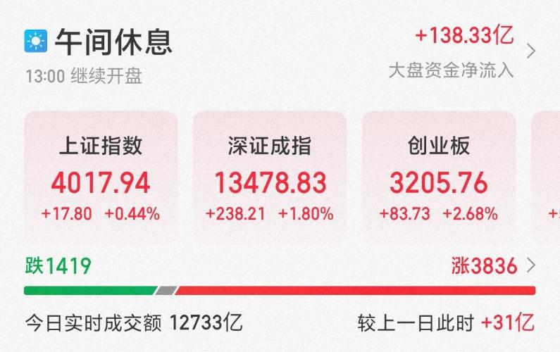 市场分析:A股在之前几天围绕4000点上行波动,板块分化明显,一些前期涨幅过大的科技回撤幅度也比较大,不过今天大盘迎来全面上涨的态势,市场热点明显增多,新能源、半导体、创新药大涨居前,上证指数站稳4000点,赚钱效应也是明显增加,如果量能跟上的话,上证指数有望突破前期高点。个人以为虽然在之前几天A股比较反复,但是其实上证指数并没有跌多少,也并未出现明显顶部形态,本轮牛市行情不变,最近一段时间大盘...