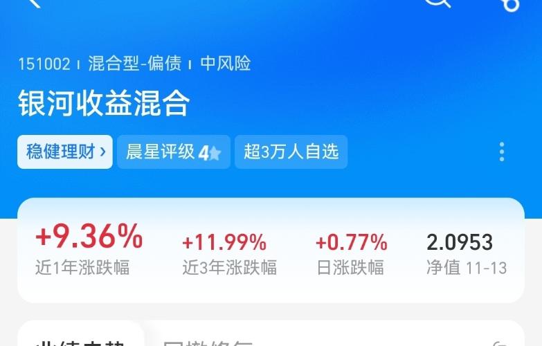 现在债市还得看混债啊,不少优秀债基抗波动能力拉满,靠短久期、高评级持仓稳稳扛住,净值没咋波动。这类抗跌债基真的能给足安全感! $银河收益混合$昨晚大涨77个大蛋,厉害了! $华泰保兴安悦债券C$昨晚调整13个 $方正富邦鸿远债券C$昨晚调整7个