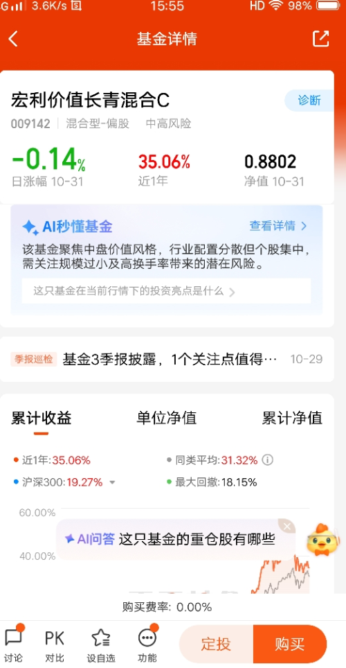 $宏利新兴景气龙头混合A[012382]$我早就知道这个基金升慢跌最怏所以前几天最高价位我巳走了一半了你们等吧