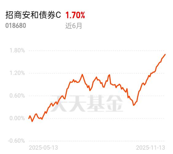 当下市场环境里,止盈资金想找个“进可攻退可守”的地方,招商安和债券C正合适。作为10%中枢的低波固收+,招商大厂靠谱,10%权益不怕踏空,收益也不会像短债那样局促,近6个月收益1.70%,是个好选择。