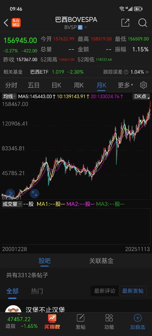 $巴西ETF(SH520870)$这么牛逼的市场上市第二天给干折价了这科学吗,别说涨了几万年头一天还历史新高,老A一上市世纪大顶了