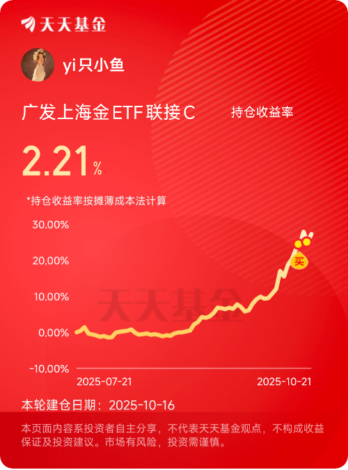 降息预期依旧,黄金趋势无疑向好,果然没跌多久板块便迎来了反弹,还好昨天买对了$广发上海金ETF联接C$,今日也是妥妥的继续吃肉!#晒收益# $国泰黄金ETF联接C$$博时黄金ETF联接C$$富国上海金ETF联接C$