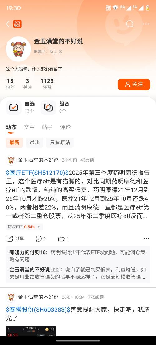 $医疗ETF(SH512170)$2025年第三季度药明康德报告里,这个医疗etf是有猫腻的,对比同期药明康德和医疗etf的跌幅,纯纯的高买低卖,药明康德21年12月到25年10月才跌26%,医疗21年12月到25年10月还跌48%,两者相差22%,而且药明康德一直都是医疗etf第一或者第二重仓股票,从25年第二季度医疗etf反而退出药明康德前十股东了,明显高买低卖了