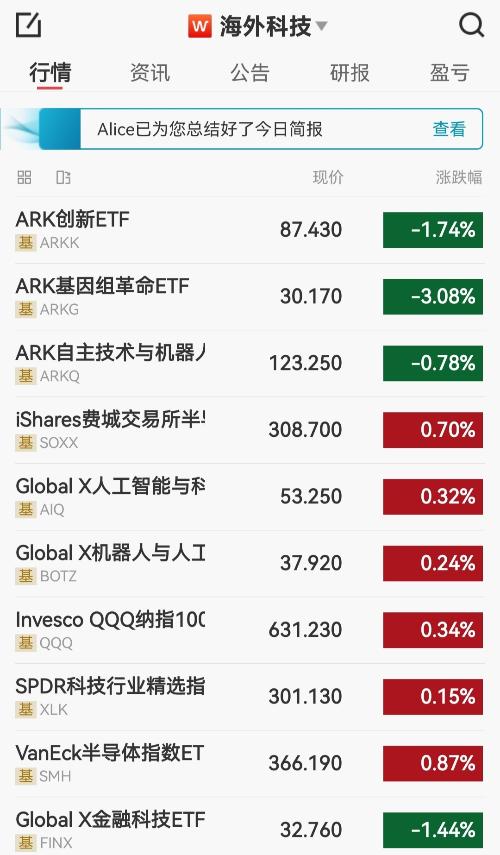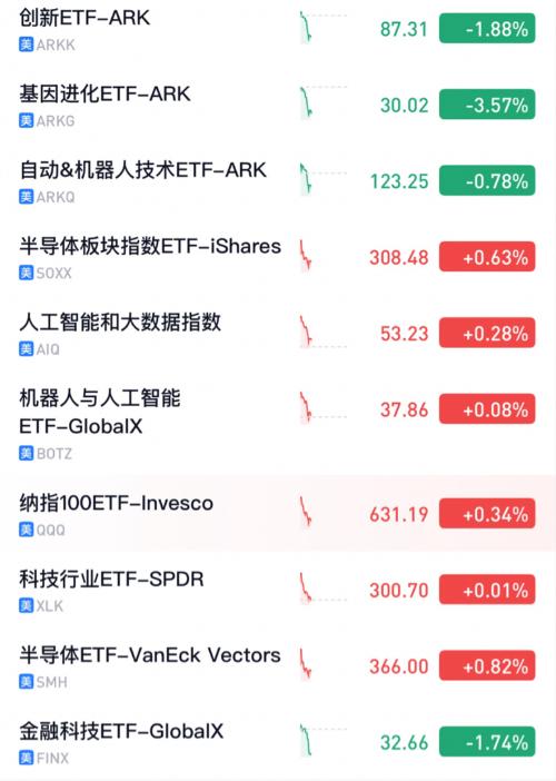 $海外科技LOF(SH501312)$ 睡前直播一下目前海科旗下十个持仓基金分布如下 其中前三重仓基金表现不佳,ARKK和ARKQ的重仓第一股特斯拉涨势很好,但独木难支;ARKG的持仓股普遍下跌 美股经常盘中和尾盘V回来,明天是否吃面还未可知!祝大家晚安