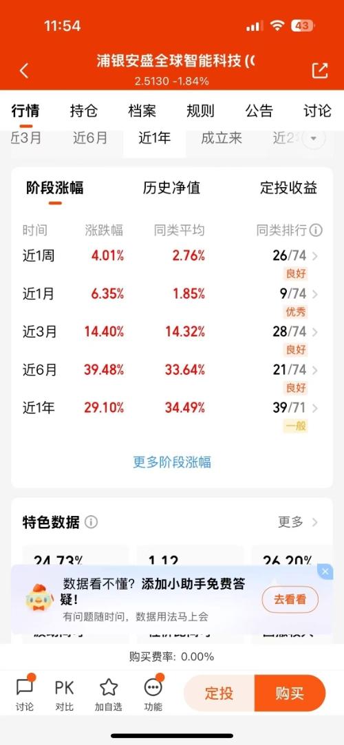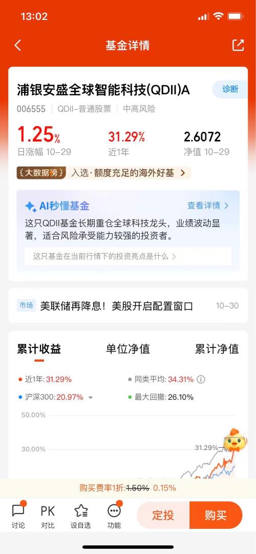 只要AI基本面没问题,美股长牛持有体验就可以的,直接上车浦银安盛全球智能科技完全不限购的美股科技基金$浦银安盛全球智能科技(QDII)C$