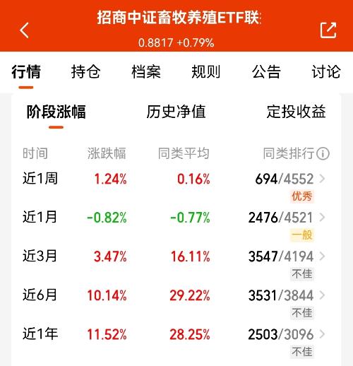 科技继续调整期,资金寻求避险,而畜牧板块作为防守方向,今天也是再次反弹;尤其是这支$招商中证畜牧养殖ETF联接C$,持仓农业养殖方向,主要覆盖养猪概念和饲料等养猪上下游+禽类、水产等养殖概念,有一定周期性,整体走势和猪价相关; 而猪肉价格,目前仍处于供需博弈的阶段,供应端,规模猪企出栏进度超前,出栏压力相对缓和,普遍采取控量提价的策略,年底需求旺季,腌腊季到来,需求有望逐步好转,作为其他板块的对冲...