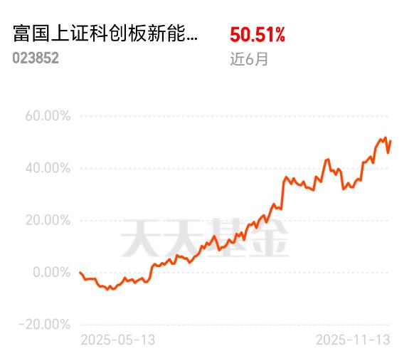 目前一边搭诺安成长A,一边配了点富国上证科创板新能源ETF联接C,看中它聚焦科创板新能源行业,近6个月涨了51%,跑赢多数同类大多数同类,弹性足、回本快。$富国上证科创板新能源ETF发起式联接C$