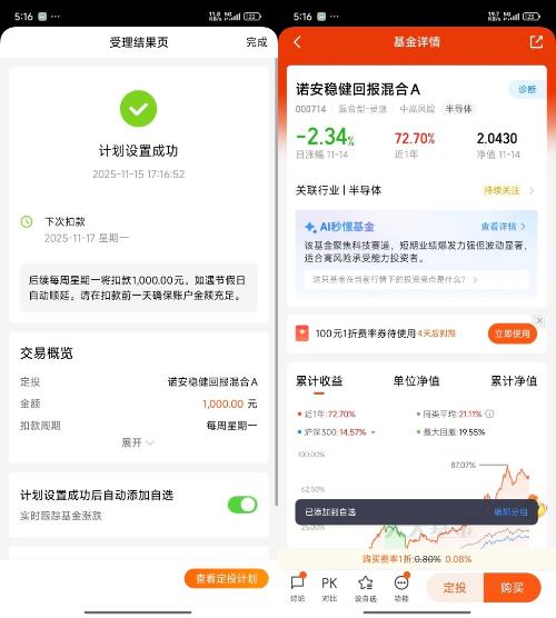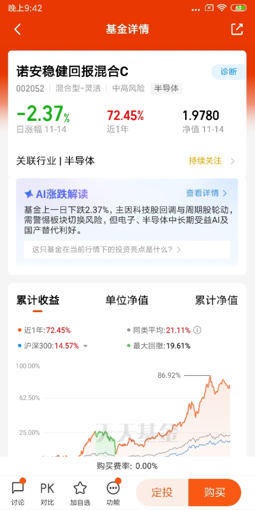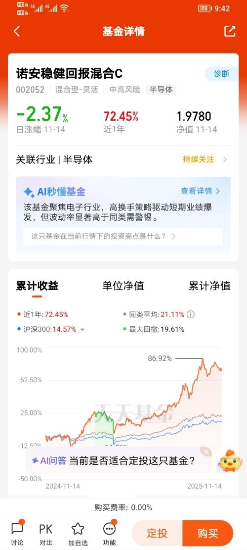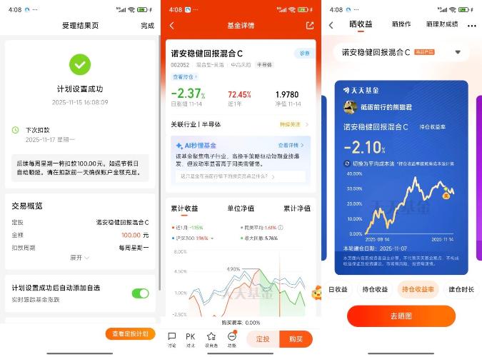 #AI产业链群星璀璨##创作扶持计划##天天基金调研团# 作为刚毕业半年的职场新人,每月工资除去房租和生活费,剩下的钱总想找个靠谱的地方“生钱”——但纯AI基金波动太吓人,消费基又没动静,跟风买过两只都以割肉收场,一度对理财失去信心。直到近期刷到诺安稳健回报混合A(000714),翻完它的三季报、基金经理访谈和近三年业绩,我果断决定:从下周一起,每周一定投1000元,把它当成参与AI赛道的“低门槛...