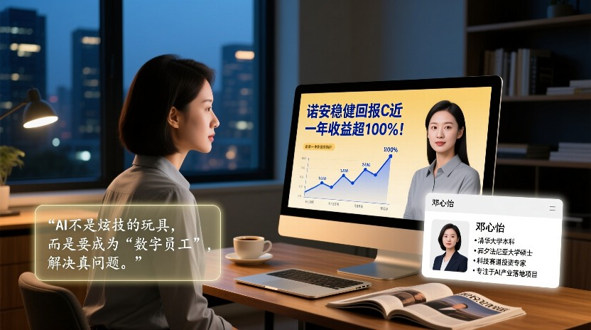 #AI产业链群星璀璨# #创作扶持计划##天天基金调研团# 一、初遇诺安稳健回报C:一场意外开启的科技冒险 今年夏天,我在刷财经新闻时偶然刷到一条消息:“诺安稳健回报C近一年收益超100%!”彼时A股震荡,新能源、消费板块萎靡不振,这条消息像一束光刺入眼帘。点开基金档案,基金经理邓心怡的名字映入眼帘——清华学霸、宾大硕士、科技赛道“寻宝者”,履历光鲜得像是AI赛道量身定制的“人设”。 但彼时我并未...