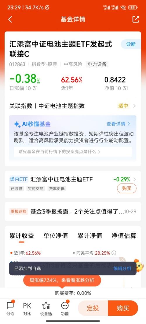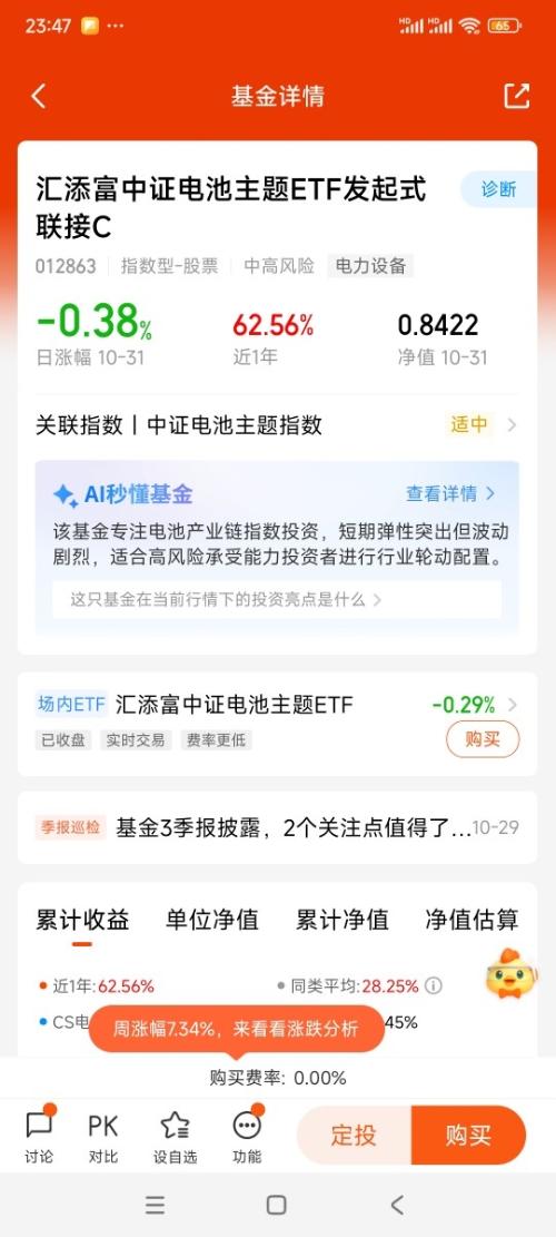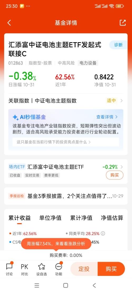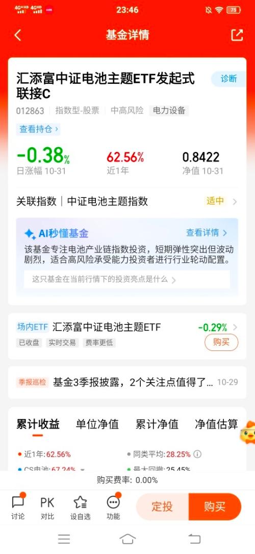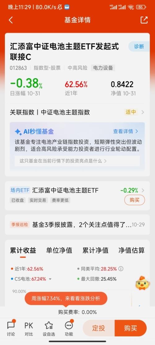 娴淑典雅的董宇航 发表于 10-31 23:59 61次浏览 我同时拿着汇添富恒生科技和富国电池主题,一个看科技前沿,一个押注新能源核心——电池板块最近猛得很,这基金近6个月涨了77%,还跑赢大多数同类,关键是估值比过去五年40%的时间都便宜,拿着踏实! 评论赞