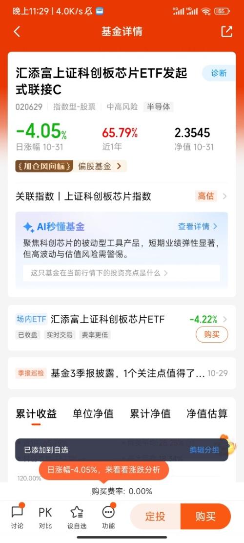 爱吃蟹黄的汤 更新于 10-31 23:25 47次浏览 电池太强了,昨天逆市大涨,今天估值又涨三个多点$汇添富中证电池主题ETF发起式联接C$ 1赞