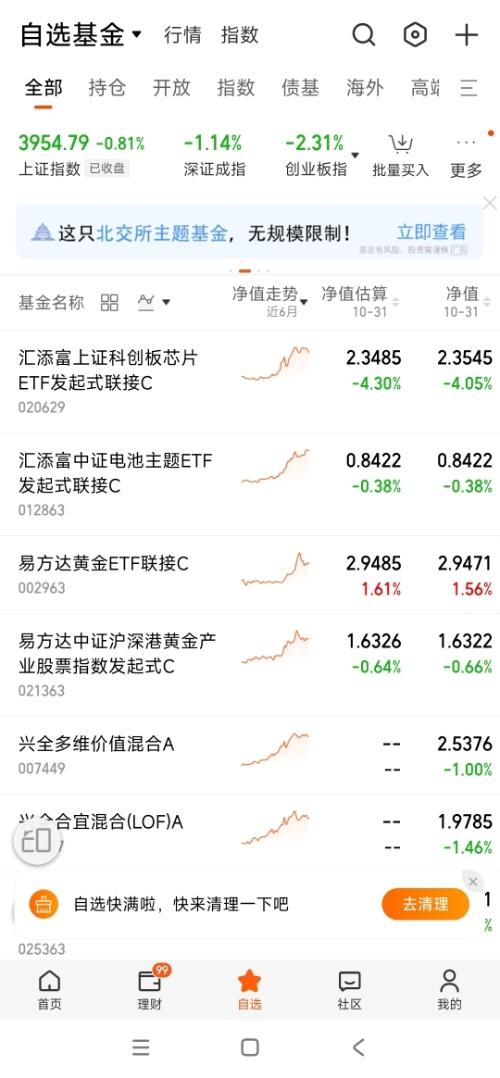 乐观的姜烨2 发表于 10-31 23:33 91次浏览 #谁玩理财还内耗呢##汇财友道##能源金属概念狂飙!锂电大周期来了?#$汇添富中证电池主题ETF发起式联接C$ #谁玩理财还内耗呢##汇财友道# 作为一名坚定的“彻底躺平派”投资人,我的理财日常简单到极致:关掉所有财经类APP推送,卸载那些让人眼花缭乱的行情软件,把基金经理的联系方式埋进通讯录深处,只专注于吃喝玩乐和认真生活。在身边人对着K线图熬夜分析、为板块轮动焦虑到失眠时,我早已跳出内耗漩涡,... 评论15