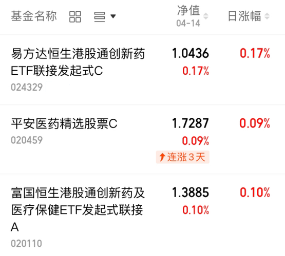 今日医药板块受药品价格机制政策利好带动,早盘全线领涨。易方达港股通创新药ETF联接C全部投向创新药,今日走势弹性较好。目前港股创新药迎来政策与业绩双重拐点,长期投资逻辑清晰,我计划逢低分批进行布局。$平安医药精选股票C(OTCFUND|020459)$$富国恒生港股通创新药及医疗保健ETF发起式联接A(OTCFUND|020110)$
