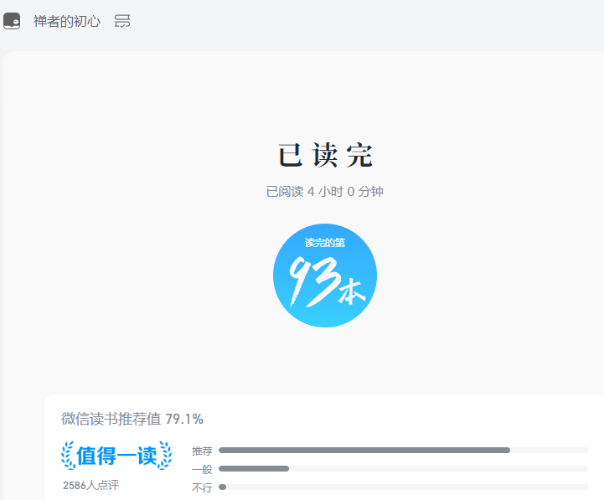 书读完了,这是一本我早闻其名的书。这是一本内容没什么特别、但又非常特别的书。确实,语言根本表达不了作者的准确意思。因为一旦诉诸言语,就划定了边界,设置了框架,套上了枷锁,背离了初衷。如果执着于文字,定能发现书中的矛盾舛误之处。经历几十载春秋,于人生,于生活,确实有些自己的体会。不确定性,正是佛教中的无常。对于无常,我曾经是相当的不了解。但自从7年前涉足基金投资以后,读了塔勒布的几本书(比如随机漫步...