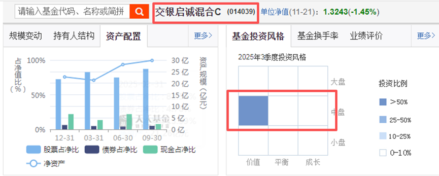 从2024年9月下旬开始的这轮牛市,一直是成长风格主导的。然而,随着某些成长板块涨幅的不断扩大,风险也在累积,资金开始寻找更具性价比的投资标的。熟悉我的朋友都知道,此前我已开始建仓一些价值风格的基金,但我发现截止到目前,我持仓的价值风格的产品,偏向于大盘价值。为了使持仓更均衡,终于被我找到了一只聚焦中盘价值的主动基金,那就是:交银启诚混合C(014039)。基金经理是杨金金。说到这位杨经理,许...