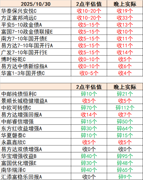 热门债基尾盘估算10.31——晓珠宝粉丝专享