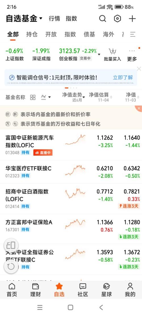 2025年11月5日实战不动熬。今天也怪,五大重仓2红3绿。而指数却全红了!市场