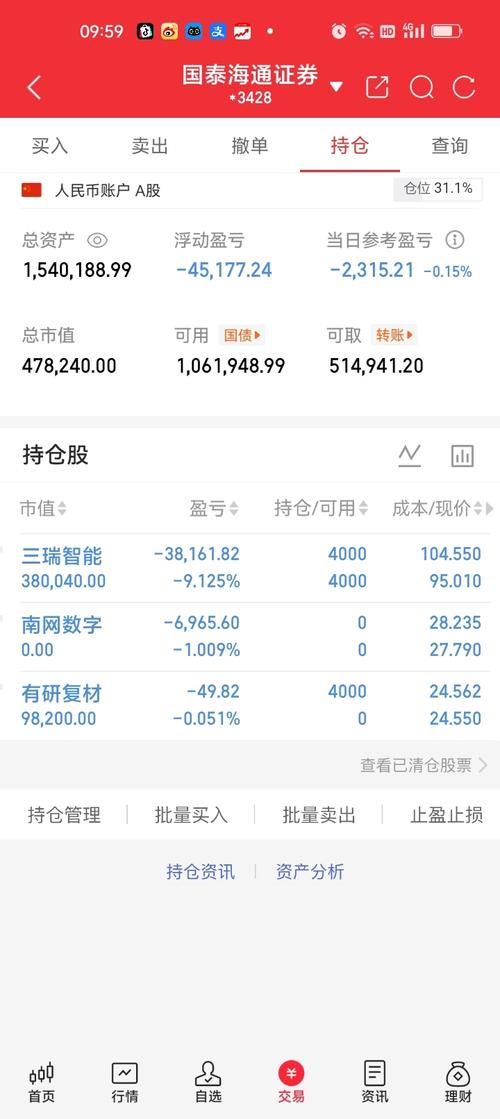 周三早盘清仓止损南网数字,开仓有研复材,持股三瑞智能。 炒股最主要的是选股,仓位管理也是非常的重要,分时线价位的介入是盈利的关键,零六年开始炒股至今整整二十年股龄的亲身经历所悟。 把握不好的股友们多看少动为妙,努力提高炒股技能才能在股市里吃肉喝汤,股市有风险入市需谨慎。 砥砺前行再创辉煌。顺风顺水顺财神。