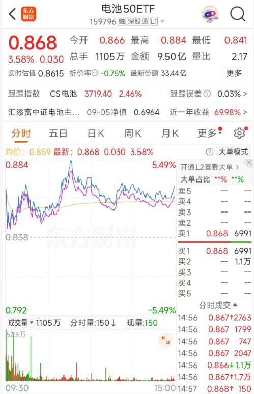 如果你看好电池行业周期反转,又想找一款弹性好、锐度高的工具,$汇添富中证电池主题ETF$(159796)值得考虑。它全面覆盖宁德时代、阳光电源、亿纬锂能、先导智能等龙头,其中阳光电源持仓占比相对较高,近期股价表现强势,这也使得基金近一周上涨15.6%、近一月上涨38.83%,表现优于富国中证电池主题ETF(561160)。在固态电池等新技术加速产业化、行业景气度持续回升的背景下,这类高弹性产品或许...