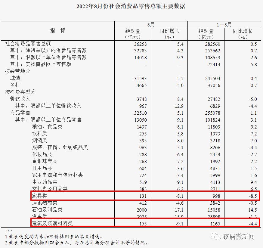 8月全国数据公布:除了家居,都在回升!家具和建材持续下滑并垫底!