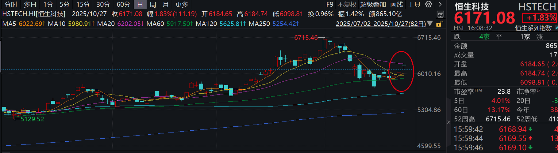 $恒生科技指数(HS|HSTECH)$纳斯达克中国金龙都已经涨回9月30日高点了