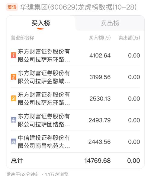 华建集团:牛市罕见!五个跌停板,拉萨牛散抄底买入