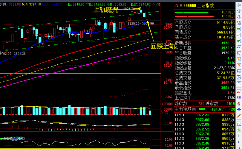 两市早盘窄幅低开后冲高回落,上半盘围绕平盘线下小幅弱势震荡,两市个股普跌。 上证日线走势图,上周中指数窄幅新高,我在文章里提醒了,上证日K线向上远离上轨,我的长线做T指标日线级别以内顶部信号范围,极易引发短线的向下回踩修复,实际走势在上周后半周冲高回落,市场情绪短期转下悲观. 本周评、昨天午间收评,《反弹预期》逆势点题提醒,短线指标与时空低位,5分钟5浪回调接近尾声,短线重回反弹周期后,昨天后半盘...