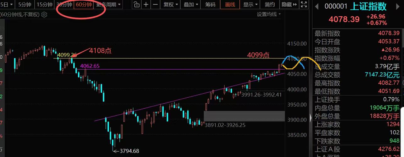 沪市如做极致高点:看看4094点左右或还有惯性以上4100整数关口?然后就哦呵,完成阶段任务……变回撤…