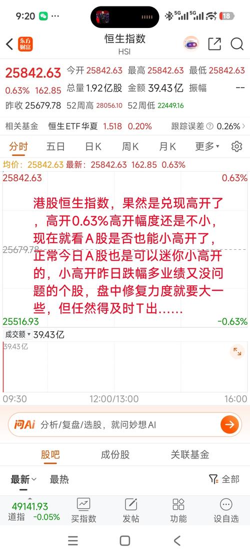港股恒生指数,果然是兑现高开了,高开0.63%高开幅度还是不小,现在就看A股是否也能小高开了,正常今日A股也是可以迷你小高开的,小高开昨日跌幅多业绩又没问题的个股,盘中修复力度就要大一些,但任然得及时T出…… $东方财富(SZ300059)$$上证指数(SH000001)$$立中集团(SZ300428)$