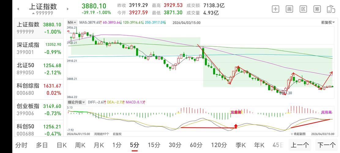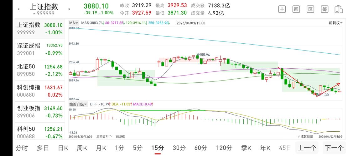 $上证指数(SH000001)$ 明天周二开市(清明节后),大盘造型不太乐观,60分K线还有探底动能,当日是否收红?难判断,控制妥情绪就行了…2026.4.6.午间。