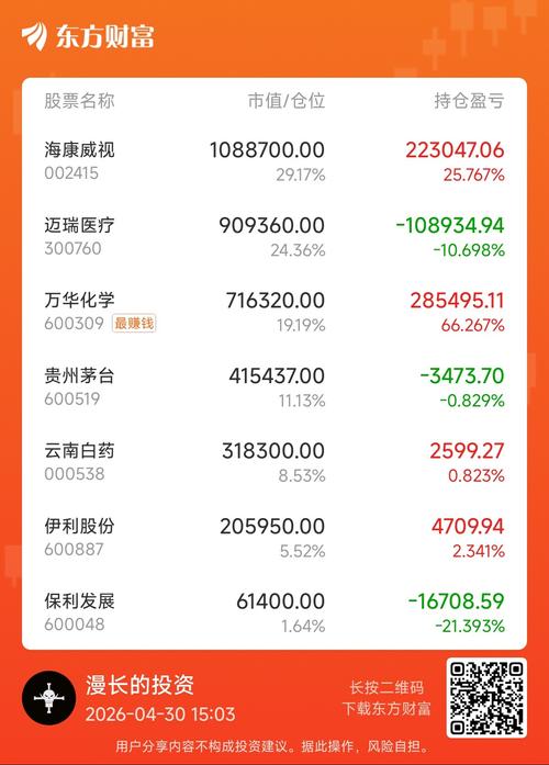 资产变动+3.97(+1.07%)余额373.27 年内实盘+25.00(+7.21%) 持仓盈亏+38.67 年内沪深300(+3.83%)上证指数(+3.61%) 年内股息0.9498(按收付实现制记录) 持有天数: 海康威视294天年内股息+22500 迈瑞医疗545天年内股息+8424 万华化学288天年内股息+10000 贵州茅台255天年内股息+8398 云南白药276天年内股息+94...