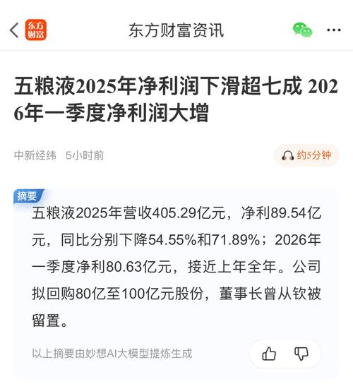 今天整个财经、金融、投资圈都被一瓶酒给“灌醉”了。不是因为它太好,而是因为它的操作太“骚”。事情的起因,是白酒老二五粮液,终于交出了姗姗来迟的2025年年报和2026年一季报。 为什么说“姗姗来迟”?因为它前一天突然宣布延期,只延了一天。当时大家还开玩笑说,这是不是要抄隔壁泸州老窖的作业?结果,谁都没想到,五粮液不是抄作业,它是直接“重写”了历史! 公告一出,所有人都傻眼了。五粮液宣布,之前公布的...