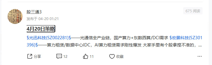 给你们说几个好公司、让你们看看,什么是牛市,也让你们对比一下手里的票,以后多看好的东西、多吃细面、少吃糠、别总问我你选的票怎么样?我给你发几个好公司看看,你再对比你的票的走势,你就自然知道,你的公司怎么样了。:“中际旭创、通富微电、沪电股份、华工科技、兆易创新、天孚通信、胜宏科技、新易盛、英维克、剑桥科技、鼎泰高科、源杰科技、腾景科技、生益科技”自己一个一个的看看,看看他们跟你的持仓有什么不一样?...