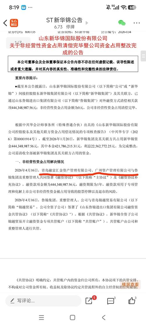 $ST新华锦(SH600735)$ 今天是我们持有新华锦大喜的日子,违规占款归还,下星期一复盘。 看来实控人真的有可能是海发 那我们来看看融资的单位 青岛融富汇金资产管理有限公司属于海发国有资本投资运营集团(简称“海发集团”)。 *直接股东:其全资股东为青岛西海岸金融发展有限公司,持股比例为100%。 *实际控制:通过股权穿透可知,其最终疑似实际控制人为青岛市人民政府国有资产监督管理委员会(青岛市...