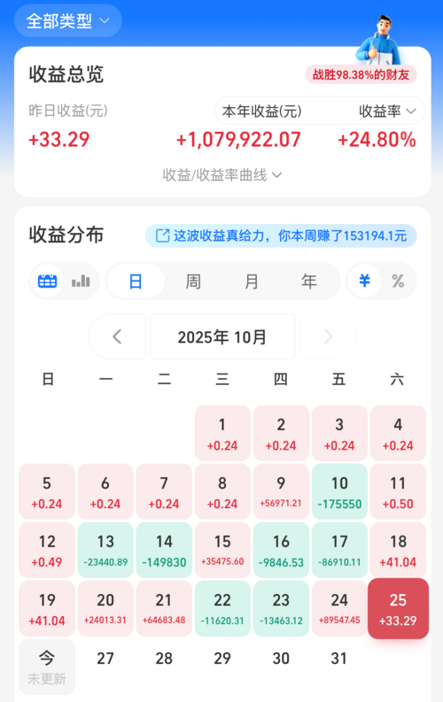 $中石科技(SZ300684)$$上证指数(SH000001)$ 更新2025/10/22 今日收益和持仓 投资如品茶,不在急饮,而在静心回味。匆忙赶路易迷失,适时驻足反能看清方向。甘醇的回报,需要时间的文火慢炖。真正的智慧,是让复利在岁月里静静生长,成为抵御风雨的根基。 风险提示:个人复盘仅供参考,不构成投资建议。