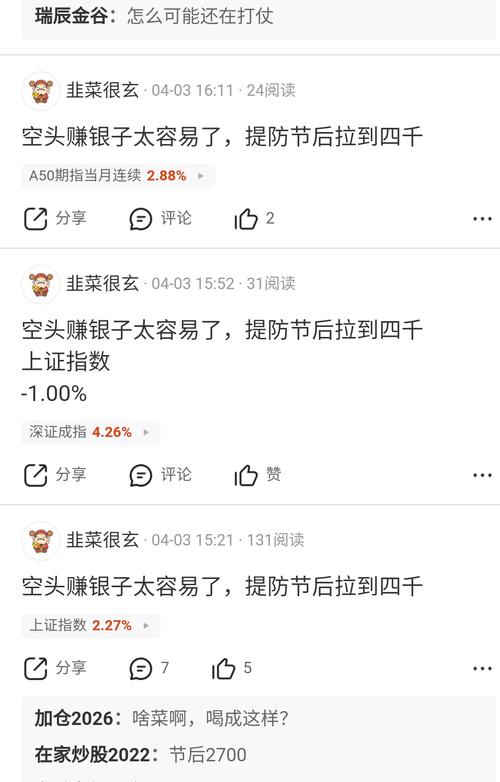 $A股指数(SH000002)$ 鱼儿都是逆流而上,风筝都是逆风飞翔。从来不怕挫折,我们一路从3000点持股到4000点,遇到的困难还少吗?是的,这次黑天鹅导致的下跌,我依然没有躲过去,但是这又能怎么样呢? 只要大趋势没有改变,只有他后面能给我再涨上来,不就完了吗? 什么人,能够做到翻十倍的牛股?拿到十倍的利润?不是会选股的那个人,而是能够从头拿到尾的那个人! 即便是给你一只十倍大牛股,你依然赚不...