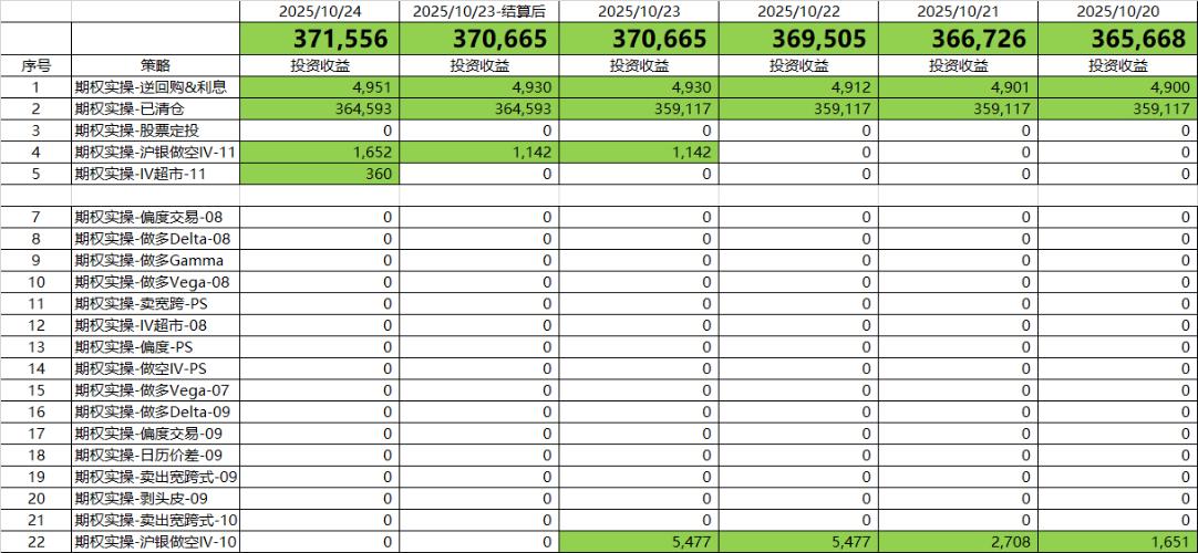 20251024-下周有中美贸易谈判,而且今天隐含波动率一直在下降,收盘前买了20张跨式;稍微调整了下白银的持仓