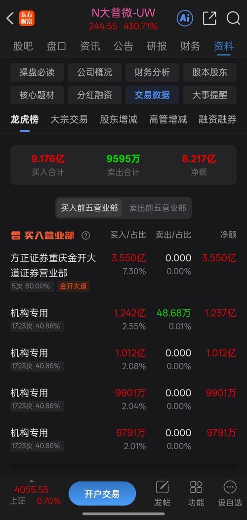 $N大普微-UW(SZ301666)$ $创业板指(SZ399006)$ $科创50(SH000688)$ 方正证券重庆金开大道席位,位于重庆市渝北区金开大道56号2单元8-2,是西南地区极具影响力的游资席位,被市场称为"金开大道"或"涪陵广场路"。这只资金的操作风格非常鲜明,核心是“低频率、高权重、大格局”。 资金体量:出手极其阔绰,动辄数亿元级别。近一年经典操作包括:大普微3.55亿,寒武纪1...