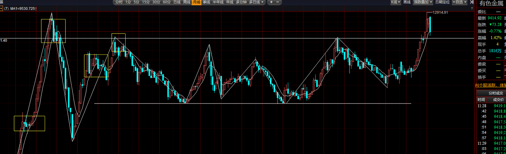 有色指数000819,1,马上收季K线,月K线。在大盘不是牛市前提下,在中枢上沿收巨量长上影季K,接下来最大可能只有2种走势,(1)最好的,横向震荡,如2009.9.30季K与2021.3.31季K之后走势。(2)不好的,直接就下来了。2,月线在高位收20%大阴线,看历史2007.11.30与2009.8.31与2015.6.30与2021.9.30月K之后走势。3,周线,高位第一次回调到31周均...