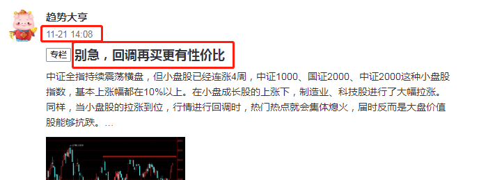 行情从10月24日开始启动反弹,到11月6日涨势放缓,大亨一直提示,中证全指的第一目标位是4700点附近,在4600点以上,就要逐步减仓,等待回调后再买入。于是在11月21日,给出了回调再买的策略,行情今日如期回调!股市能有多大的下跌空间?其实很小很小,几乎没有下跌空间了!中证全指在4450点,就可以看做此次回调的强支撑,4500点以下,其实就属于可以重仓的区域了。300成长指数,作为大盘成长股的...