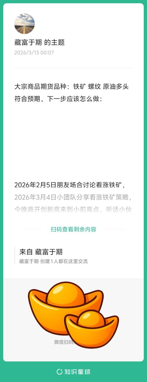 大宗商品期货品种:铁矿螺纹原油多头符合预期,下一步应该怎么做: 知识星球:藏富于期 $大宗商品(SH000979)$